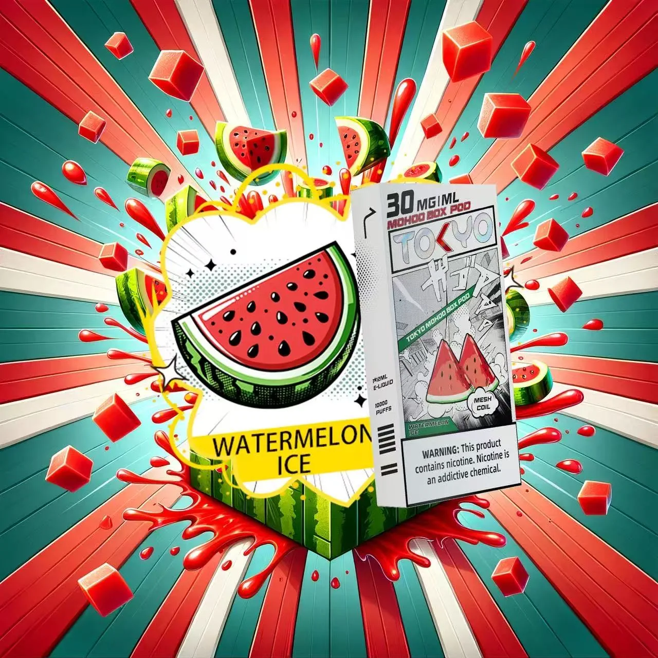 西瓜口味東京魔盒電子煙彈,釋放鮮甜多汁的夏日果香,帶來如品嚐新鮮西瓜般的清涼與愉悅體驗。